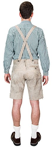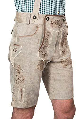 Specificaties: Kurze antik look Bayerische Herren Trachten Lederhose mit Trägern, origineel in grau, Oktoberfest, Größe 52