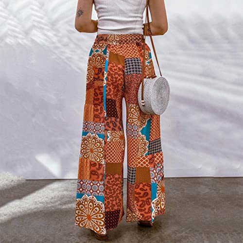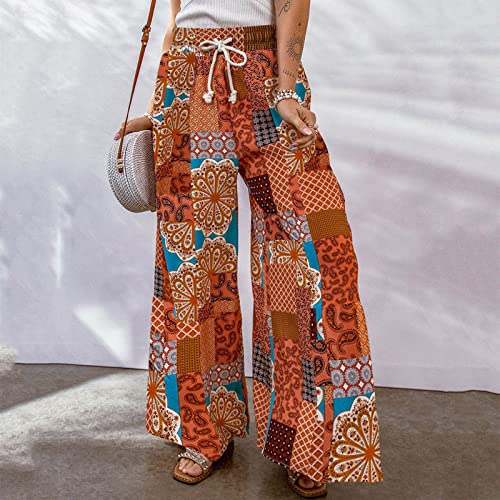 LULER Casual broek met grote print, modieus, bloemenpatroon, losse contrasterende casual broek voor dames, zwart geruite broek voor dames
