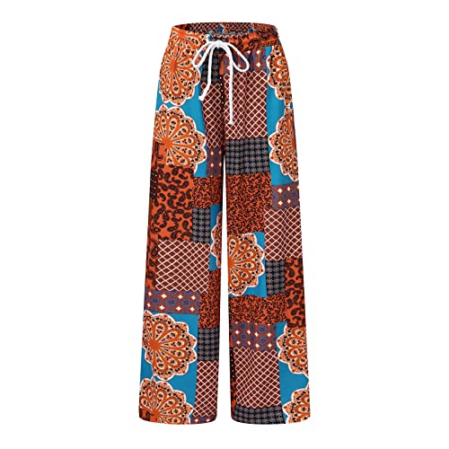 Specificaties: LULER Casual broek met grote print, modieus, bloemenpatroon, losse contrasterende casual broek voor dames, zwart geruite broek voor dames