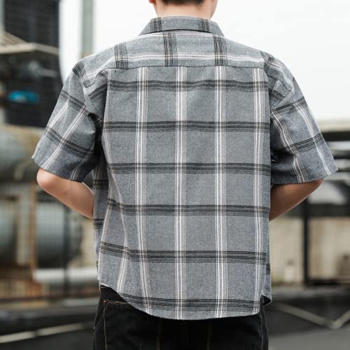 Herenshirt met korte mouwen Zomer Mode Casual Comfortabel Los ademend Outdoor Persoonlijkheid Knap retro geruit bedrukt overhemd