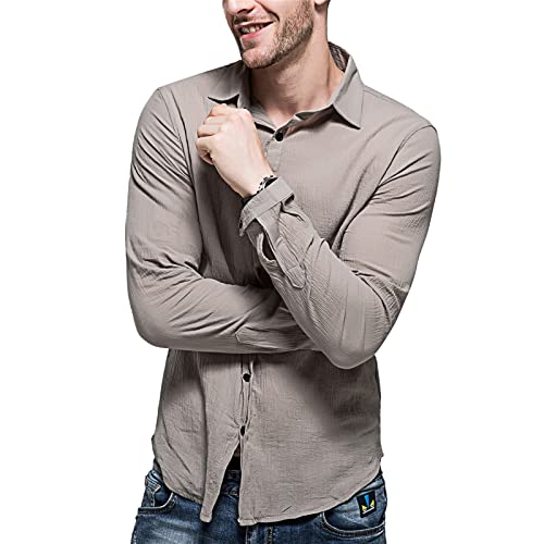 SSBZYES Heren Shirts Heren Shirts Lange mouwen Grote Maat Effen Kleur Dunne Shirts Gewassen Katoen en Linnen Heren Lange mouwen Shirts Casual Shirts Witte Shirts